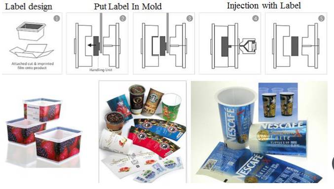 制程步驟:將薄膜送進模具內并定位,接著合模后圖樣轉印至射出產品,打開模具后薄膜剝離,產品頂出。